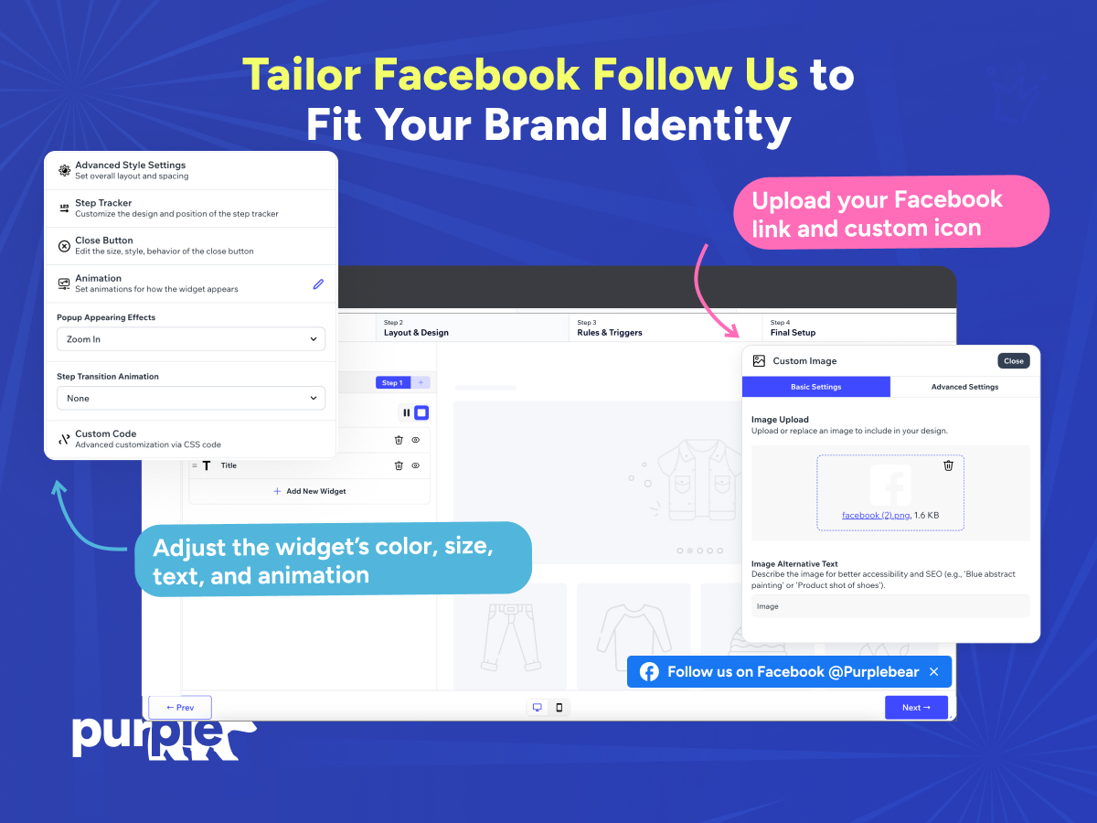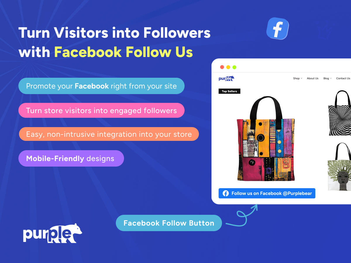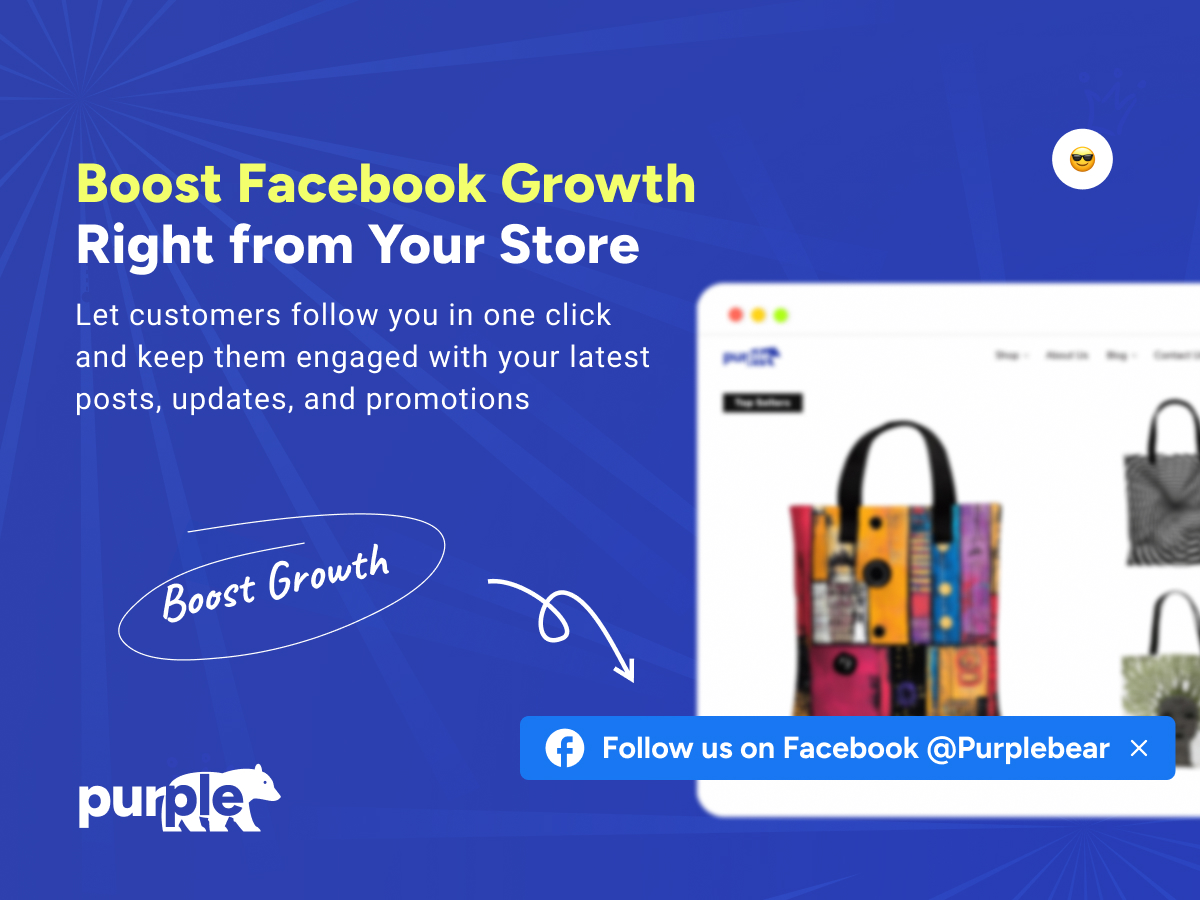 Facebook Följ gör det enkelt att marknadsföra din Facebook-sida direkt på din butik. Använd en ren, anpassningsbar widget för att bjuda in besökare att följa dig med ett klick. Oavsett om du marknadsför försäljning, community-uppdateringar eller evenemang, hjälper denna app till att bygga din Facebook-följare utan att störa webbläsarupplevelsen.