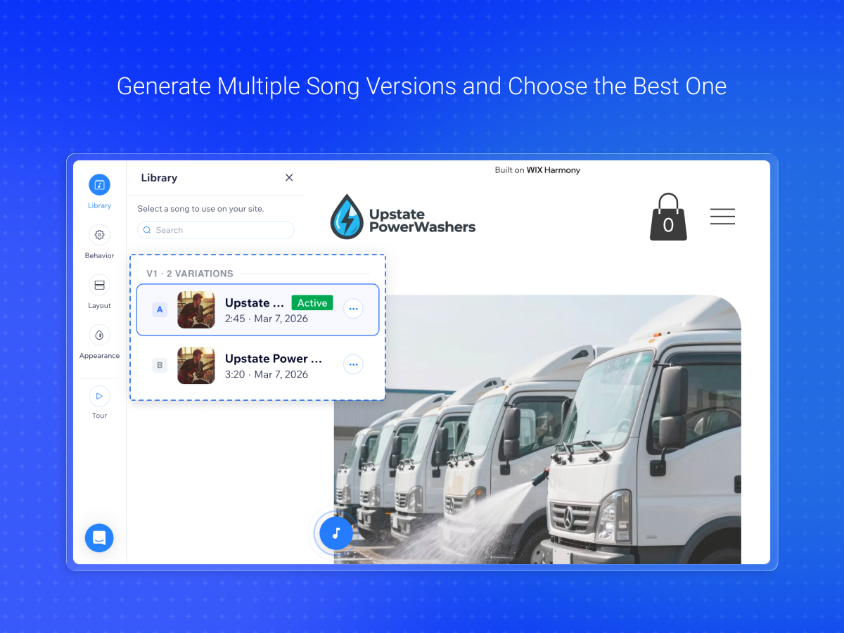 The app charges a monthly fee of $3.99 for the app usage and site music player that enables your customers to listen to your Brand Song. Every song generations (2 variants included) costs $1.29 as a one-time fee. AI Lyrics and Genre generation is deducted from your Wix AI Credits.