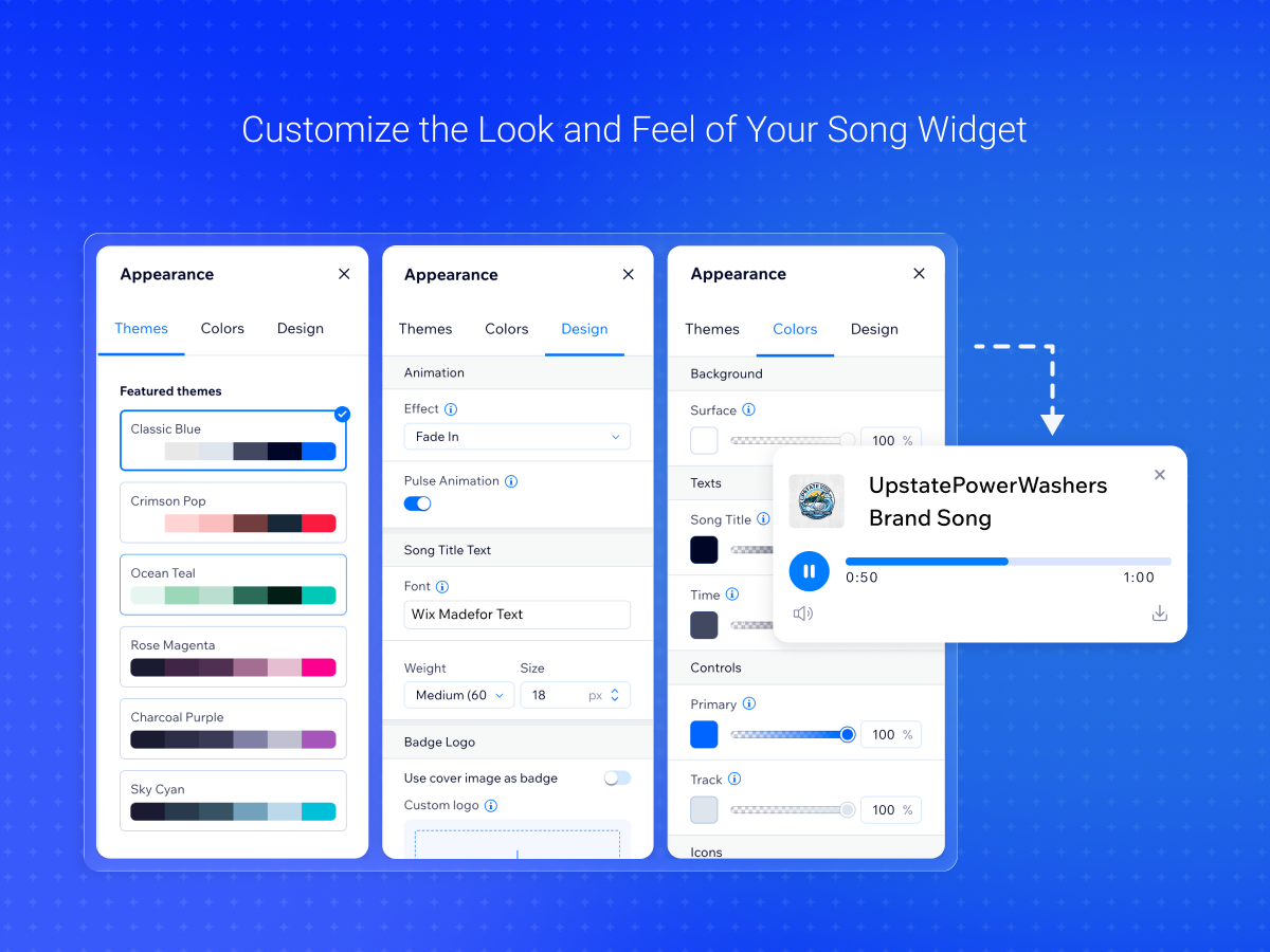 Control how your song player looks and behaves, and match its design with your website’s style