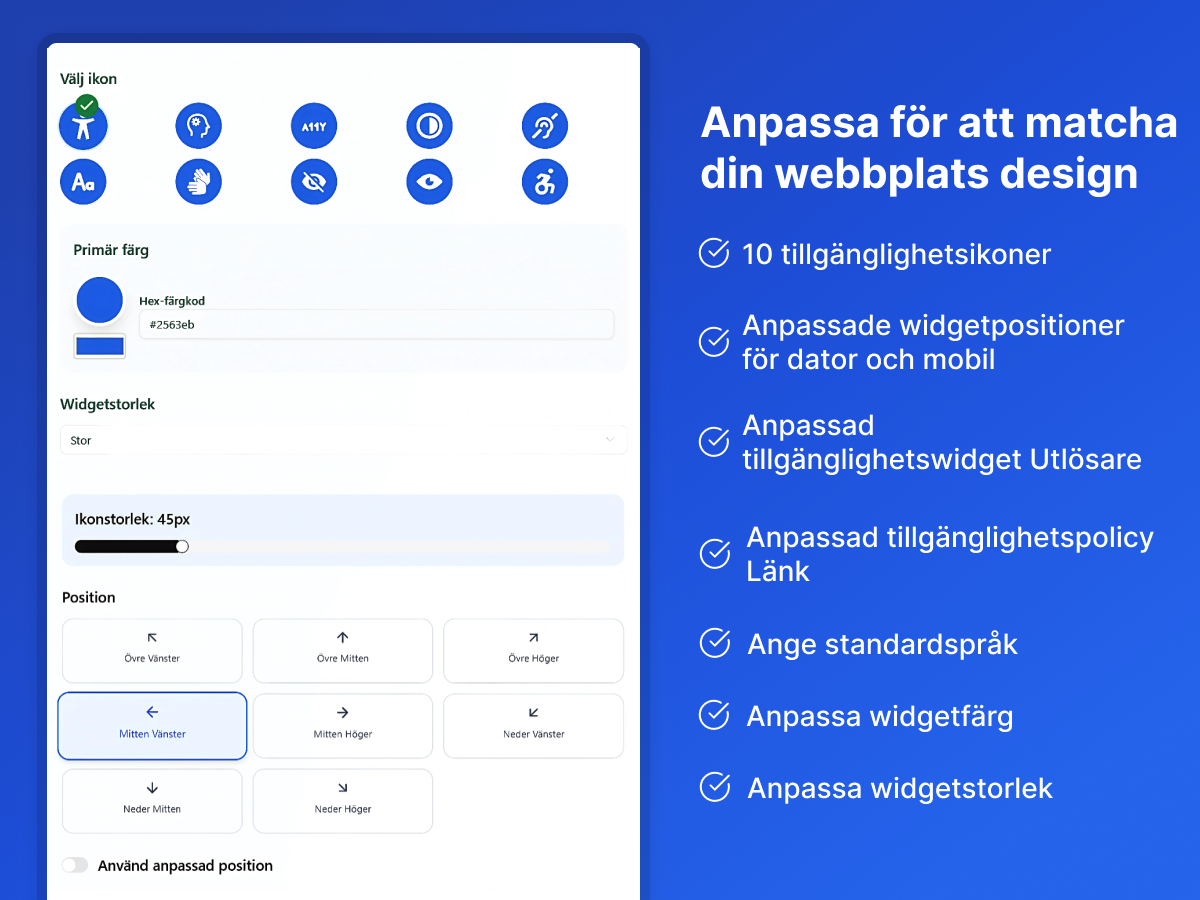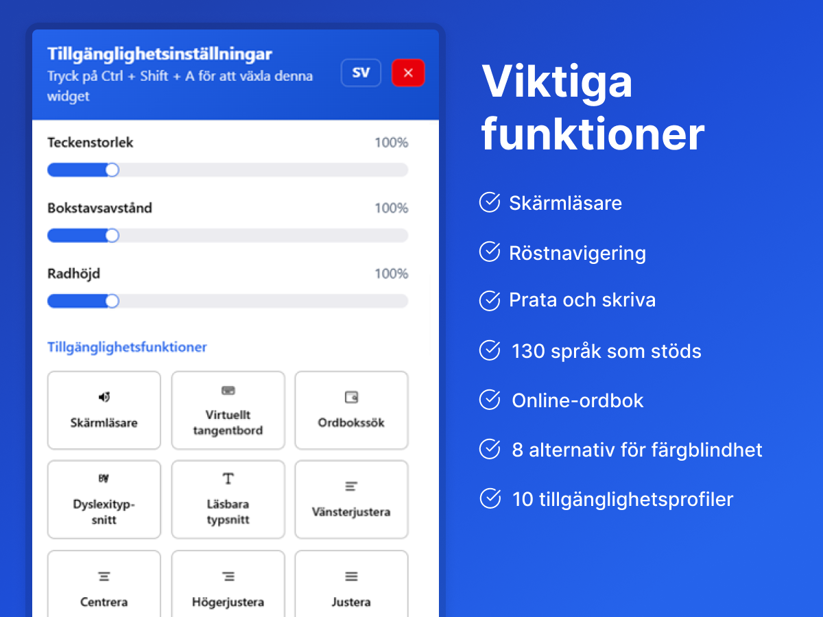 Upplev den ledande tillgänglighetswidgeten som är utformad för att förbättra din webbplats tillgänglighet med enkelhet och effektivitet.