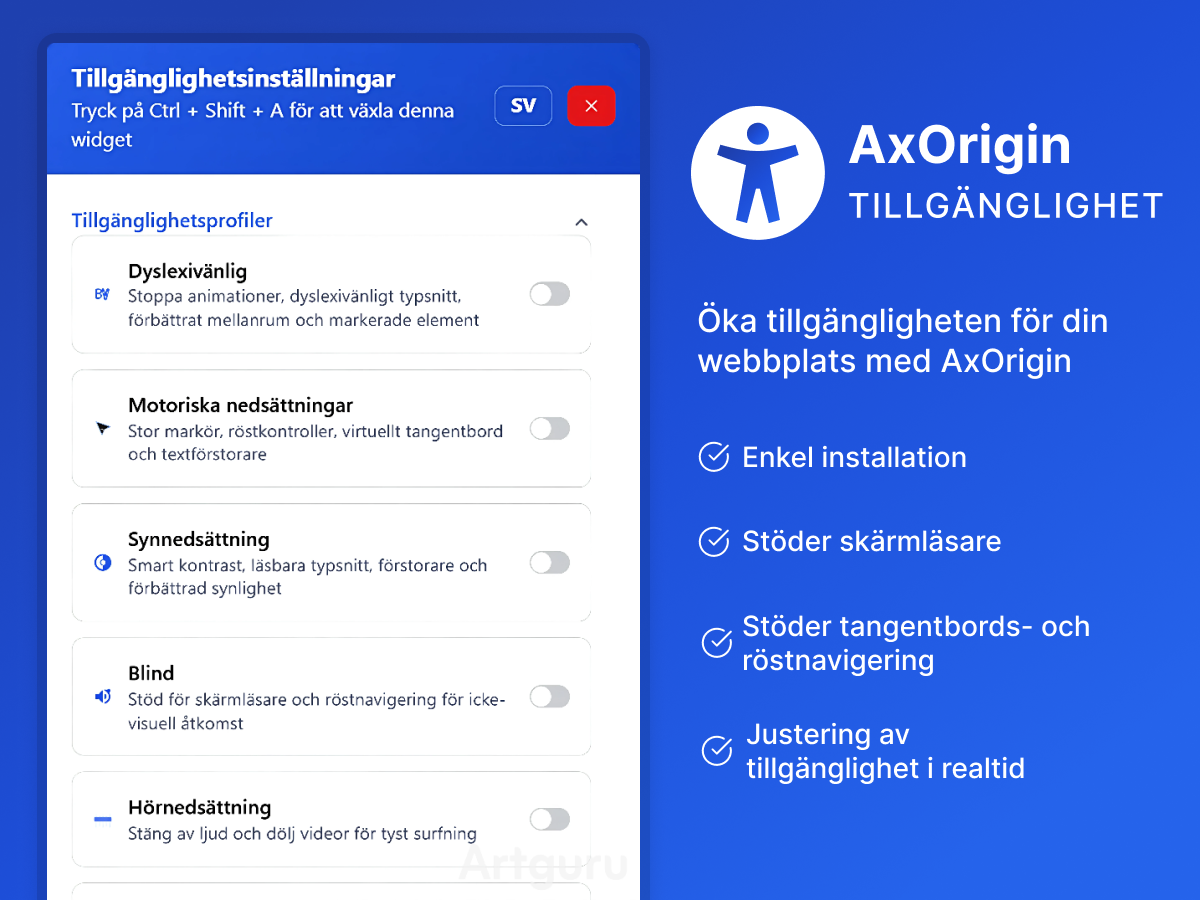 Varför välja AxOrigin Accessibility Widget som din främsta tillgänglighetslösning? • Kostnadsfri 14-dagars provperiod