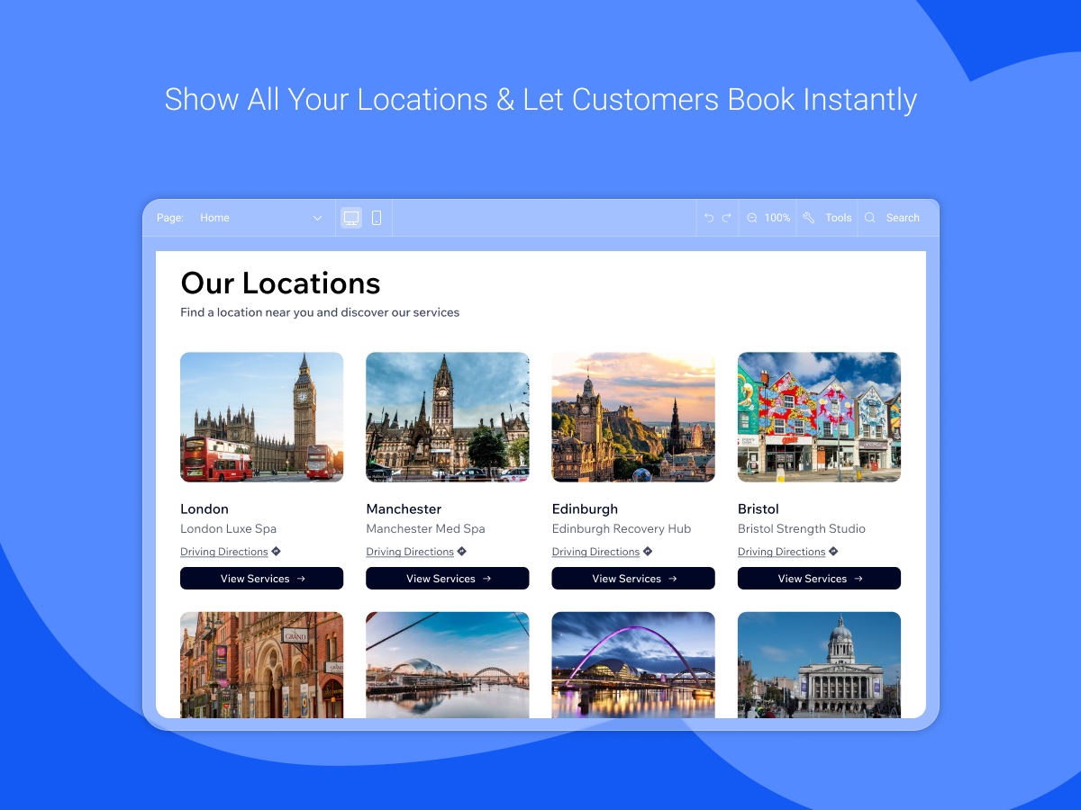 This solution not only makes booking faster for your customers but also helps you highlight your unique offerings at each location. From promotions to featured services, you can present your locations in a way that attracts attention and encourages engagement, giving your website a professional edge.