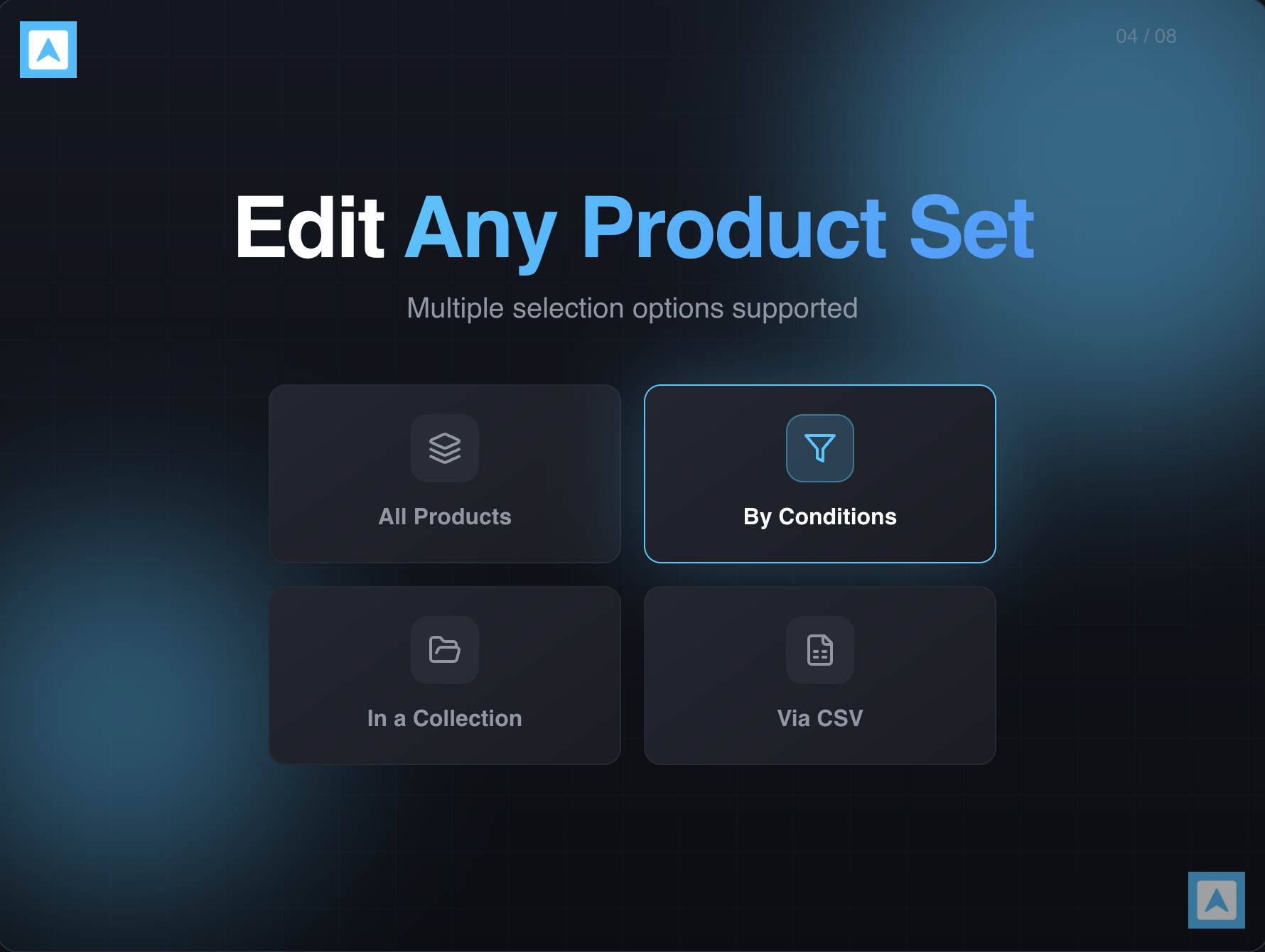 Using the rule-based editor, easily target products and variants based on criteria such as collection, category, product type, vendor, or tags. Apply price increases, decreases, or fixed pricing with full control.