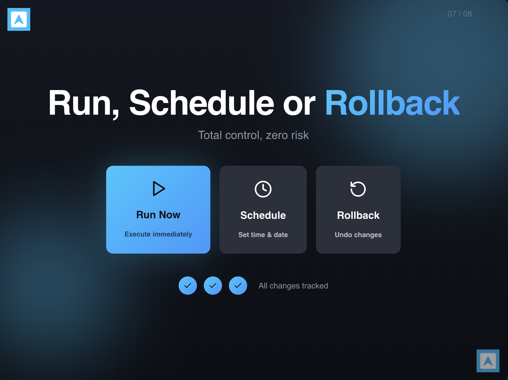 Execute Real-time or Schedule for Future. Rollback Anytime. Set Recurring Tasks