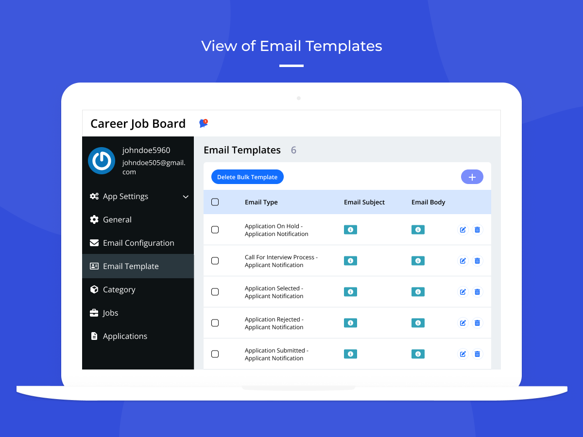 • Enable automated email notifications for both admins and applicants to streamline recruitment communication