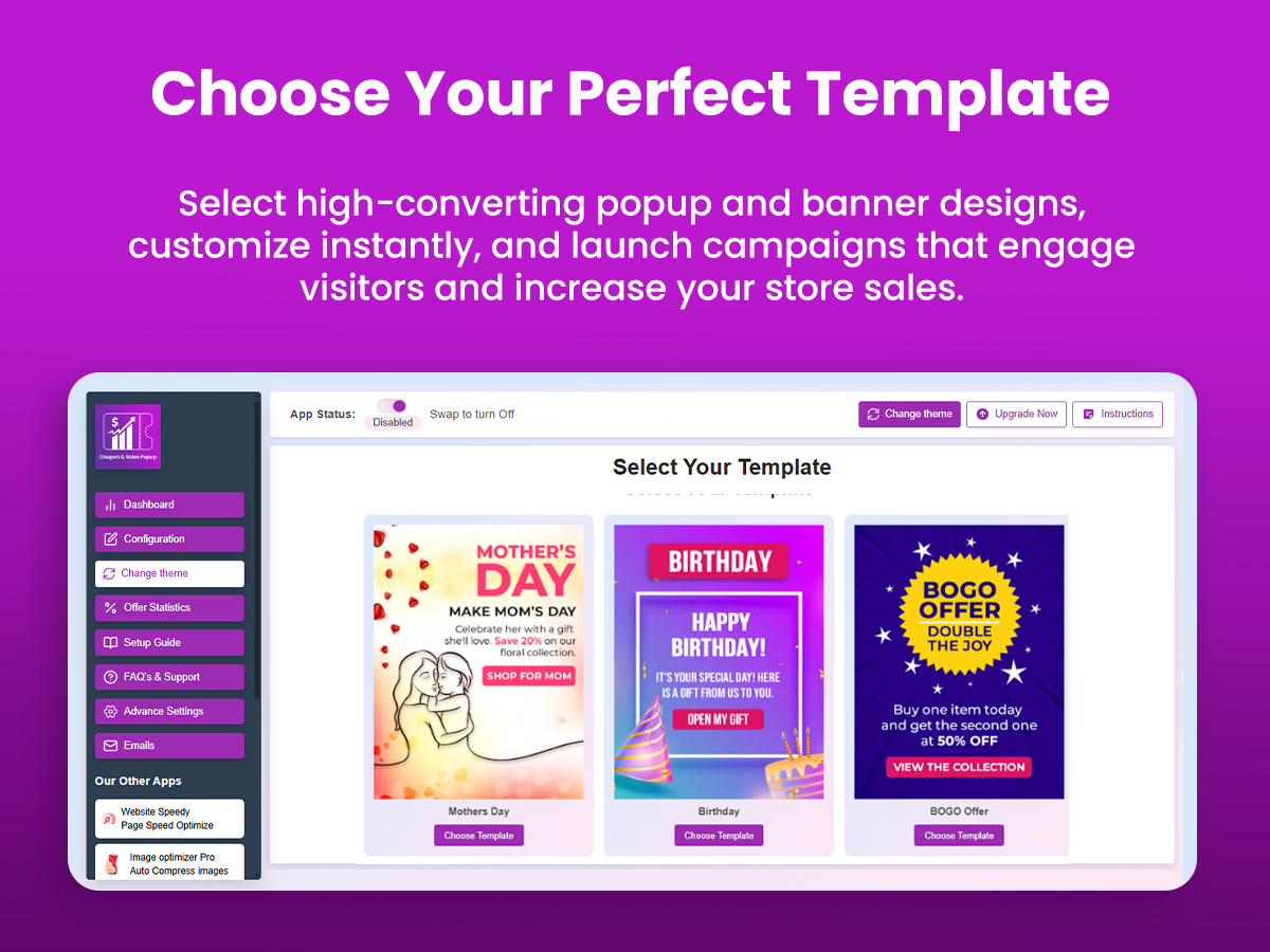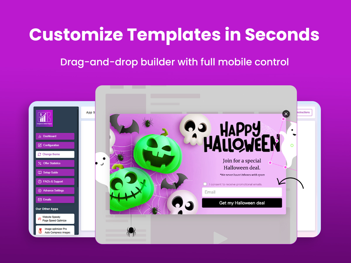 Popup builder helps website owners increase conversions and revenue by showing smart, eye-catching coupon and discount popups to visitors at the right moment. Easily create and manage promotional popups for coupon codes, limited-time deals, seasonal offers, and special discounts without any technical setup. Target visitors based on behavior such as page visits, time on site, or exit intent to capture attention before they leave. Customize popup design, text, and offers to match your brand and campaign goals. Highlight exclusive coupons, flash sales, bundle deals, and first-time buyer discounts to drive more purchases. The app is built to be lightweight and fast, ensuring it doesn’t slow down your store while still delivering high-impact marketing messages. With flexible display rules and simple controls, merchants can launch campaigns in minutes and continuously optimize offers to maximize sales and engagement.