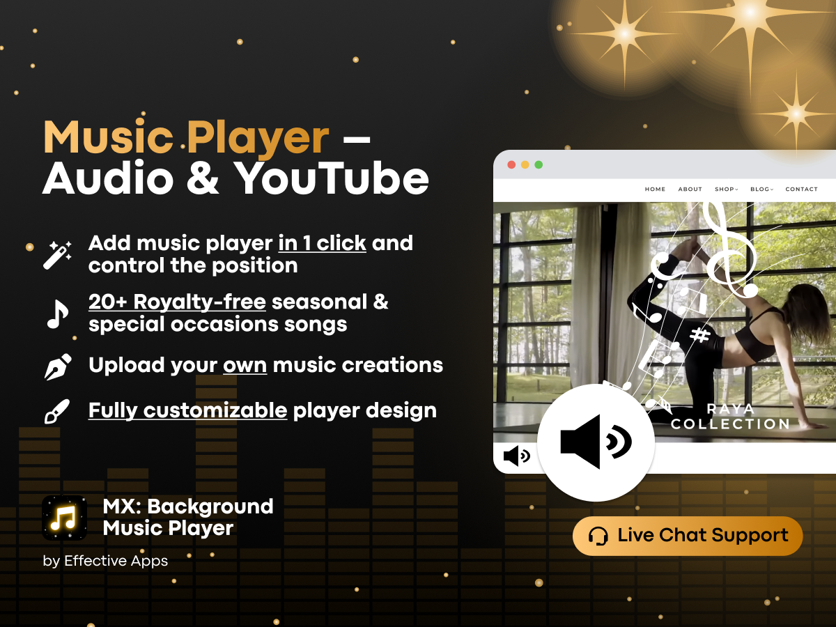Create an unforgettable browsing experience with catchy background music. Easily add music to your website and instantly set the mood for your visitors. Whether you want to entertain, inspire, boost sales, or delight visitors, this app brings your website to life.