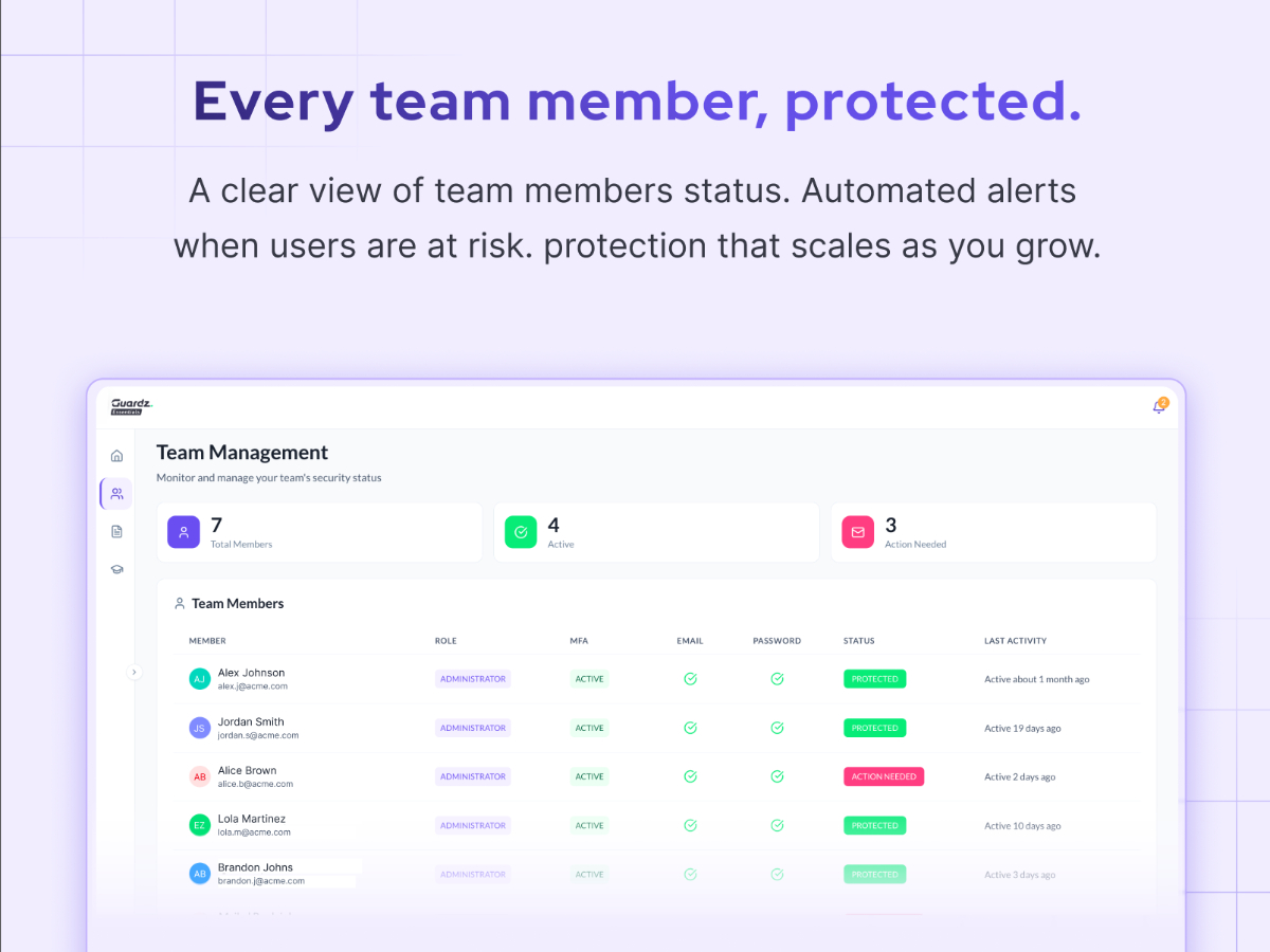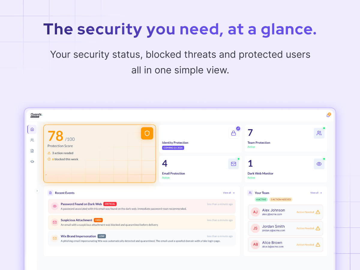 Small businesses face the same cyber threats as large organizations, but most security tools are built for IT teams. Guardz Essentials protects your small business from cyber threats without requiring security expertise. Our app continuously monitors your email, Google Workspace and accounts for threats, so you stay protected while focusing on your business. Super Admin Access required in order to install the app.