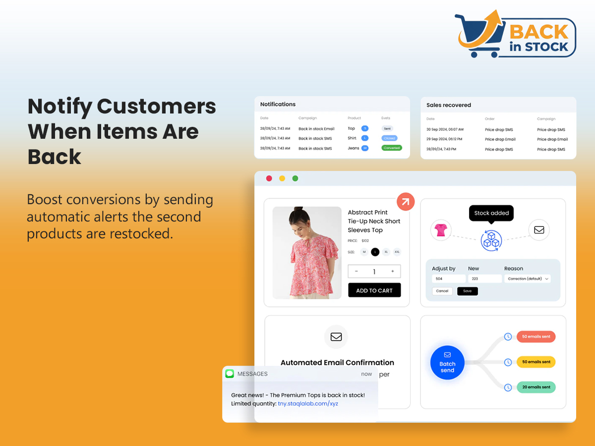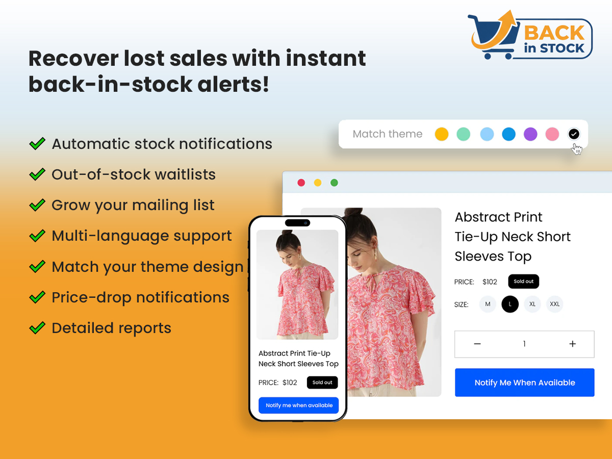 Designed to blend seamlessly with your store, the app offers customizable notification messages and display options to match your branding. Whether you’re running a small boutique or a large online store, this tool helps ensure you never miss another sale due to out-of-stock items.