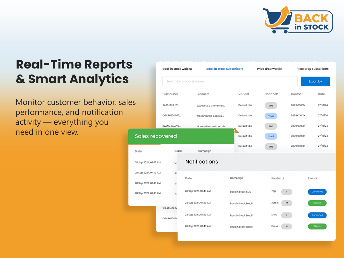 Increase conversions, understand customer demand, and keep your shoppers engaged with smart restock alerts. With built-in analytics, you’ll know exactly which products customers are waiting for, helping you make better inventory and purchasing decisions.