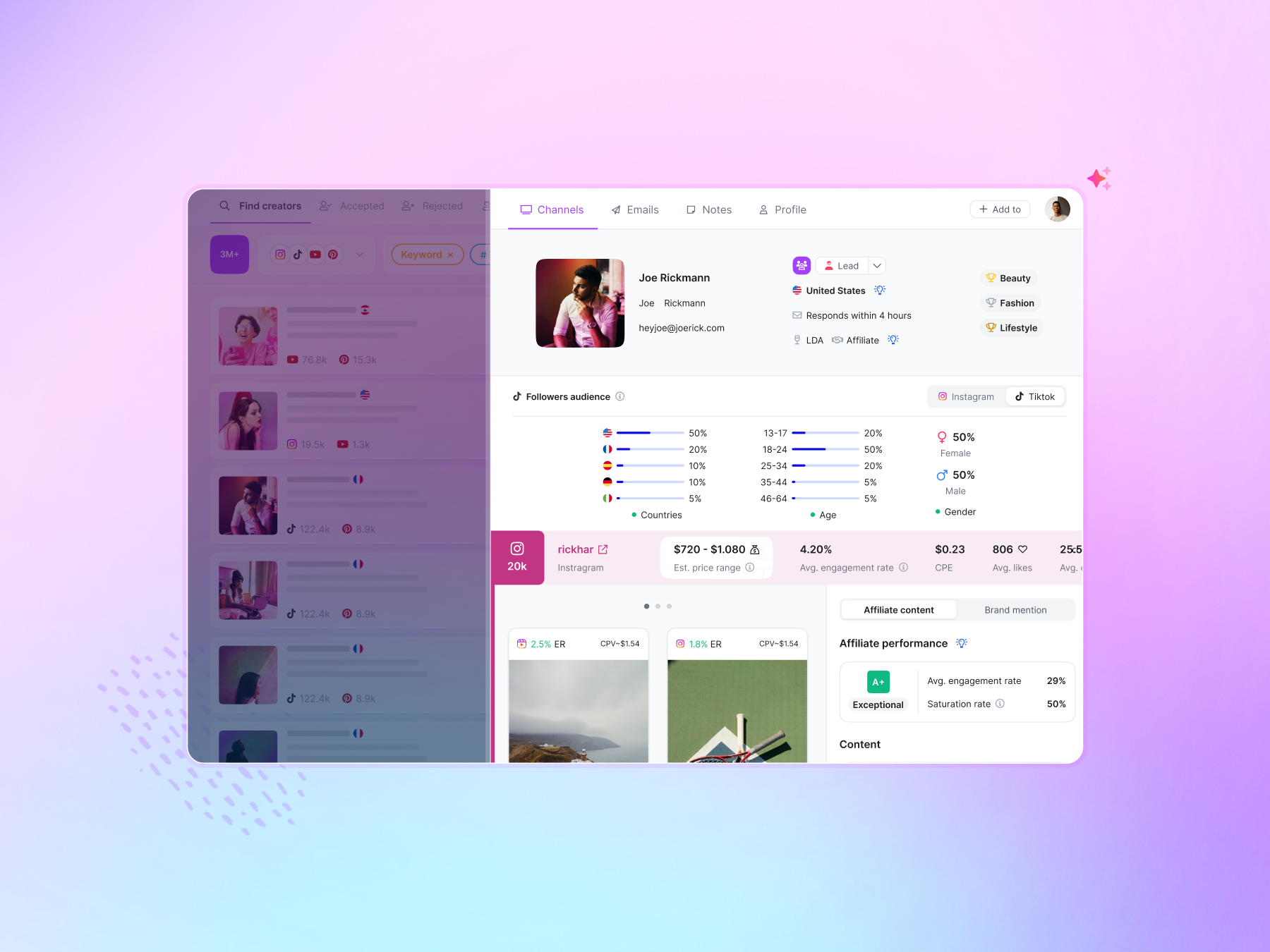 Stop scrolling socials to find creators. Find the right match fast with powerful search and filters, across all major social platforms. Discover profiles that fit your brand, audience, and campaigns